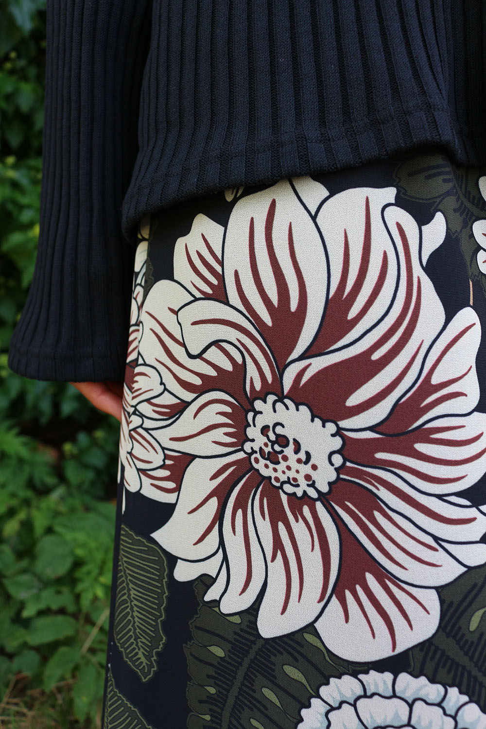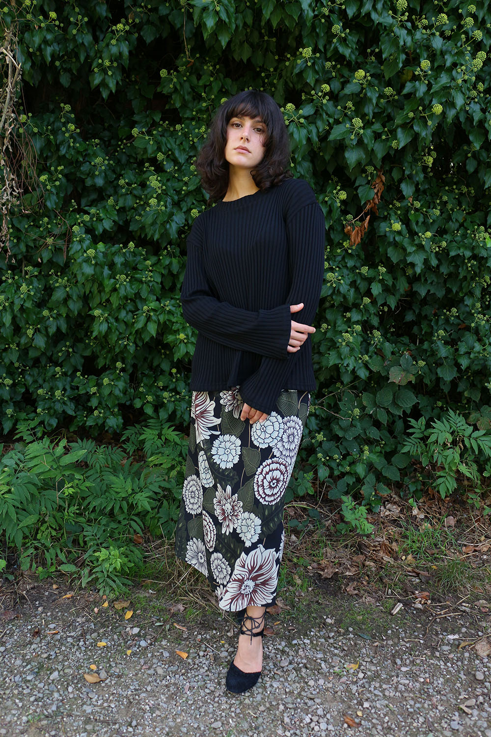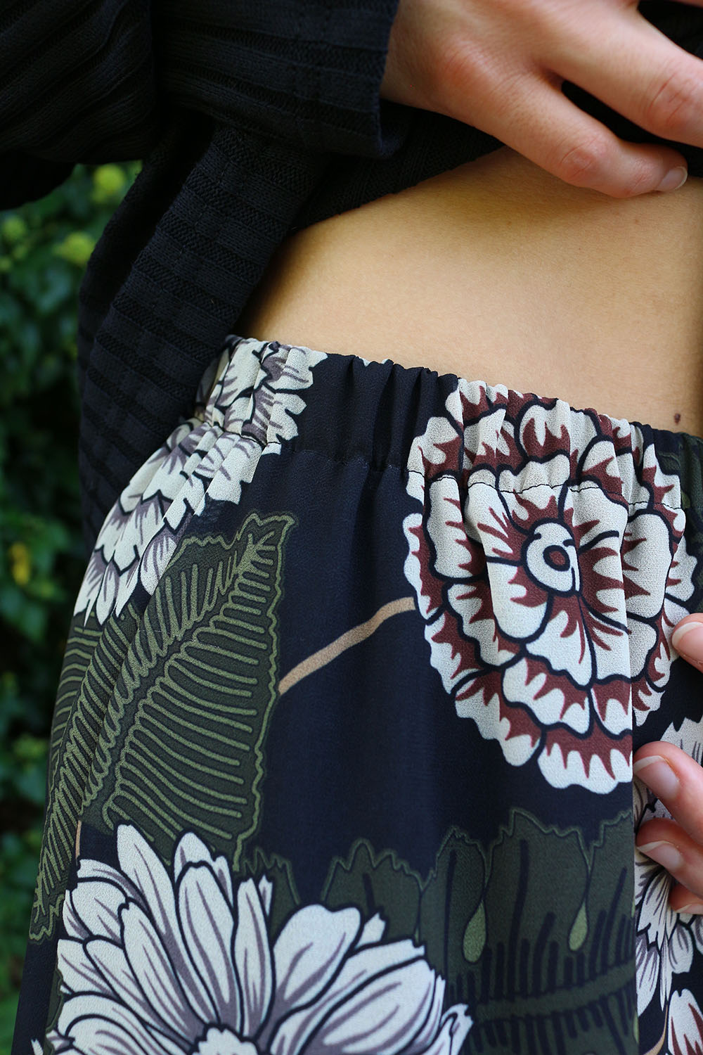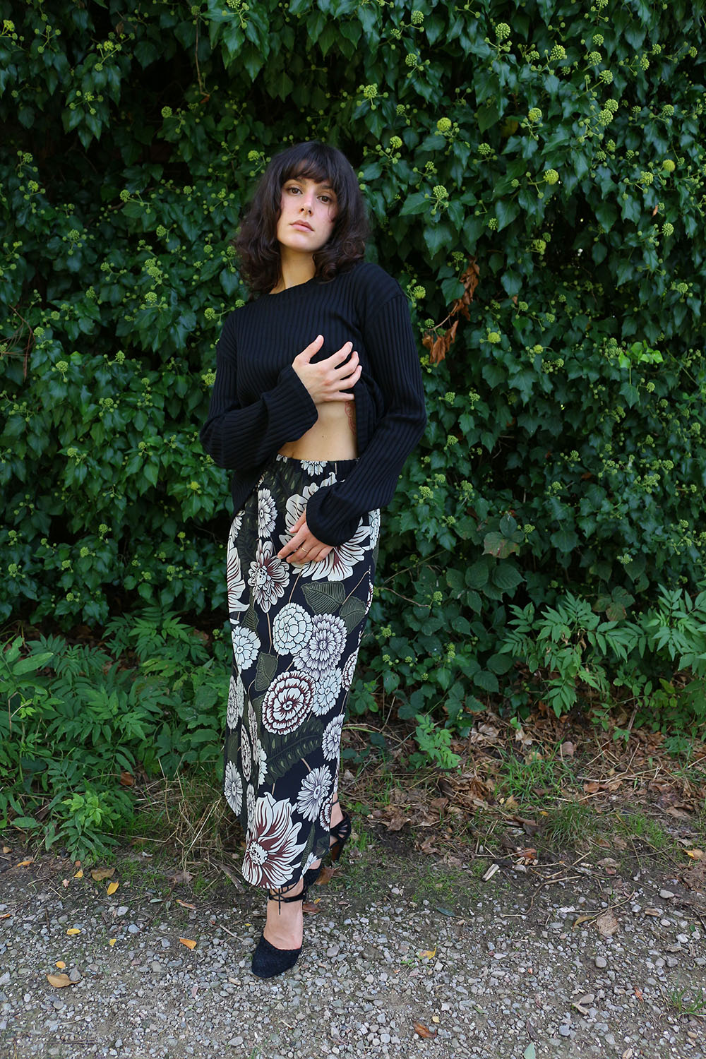 lunga 83cm, vita con elastico da 64cm a 105cm, fianchi molto ampi (da portare unicamente a vita alta)