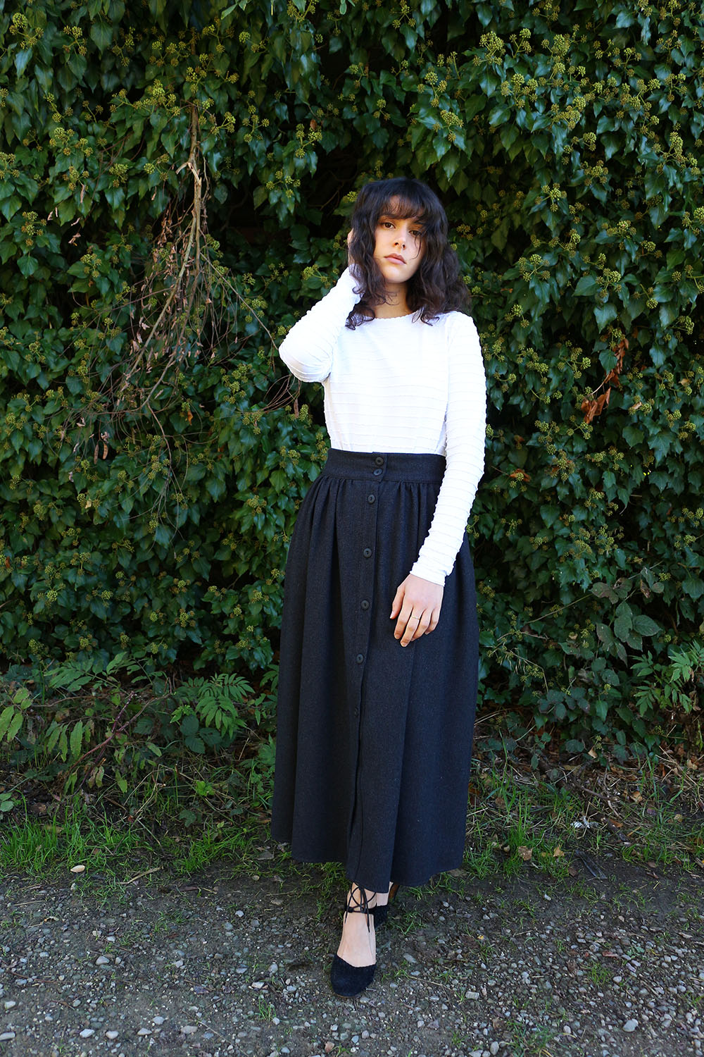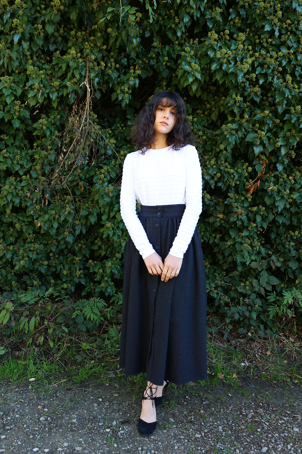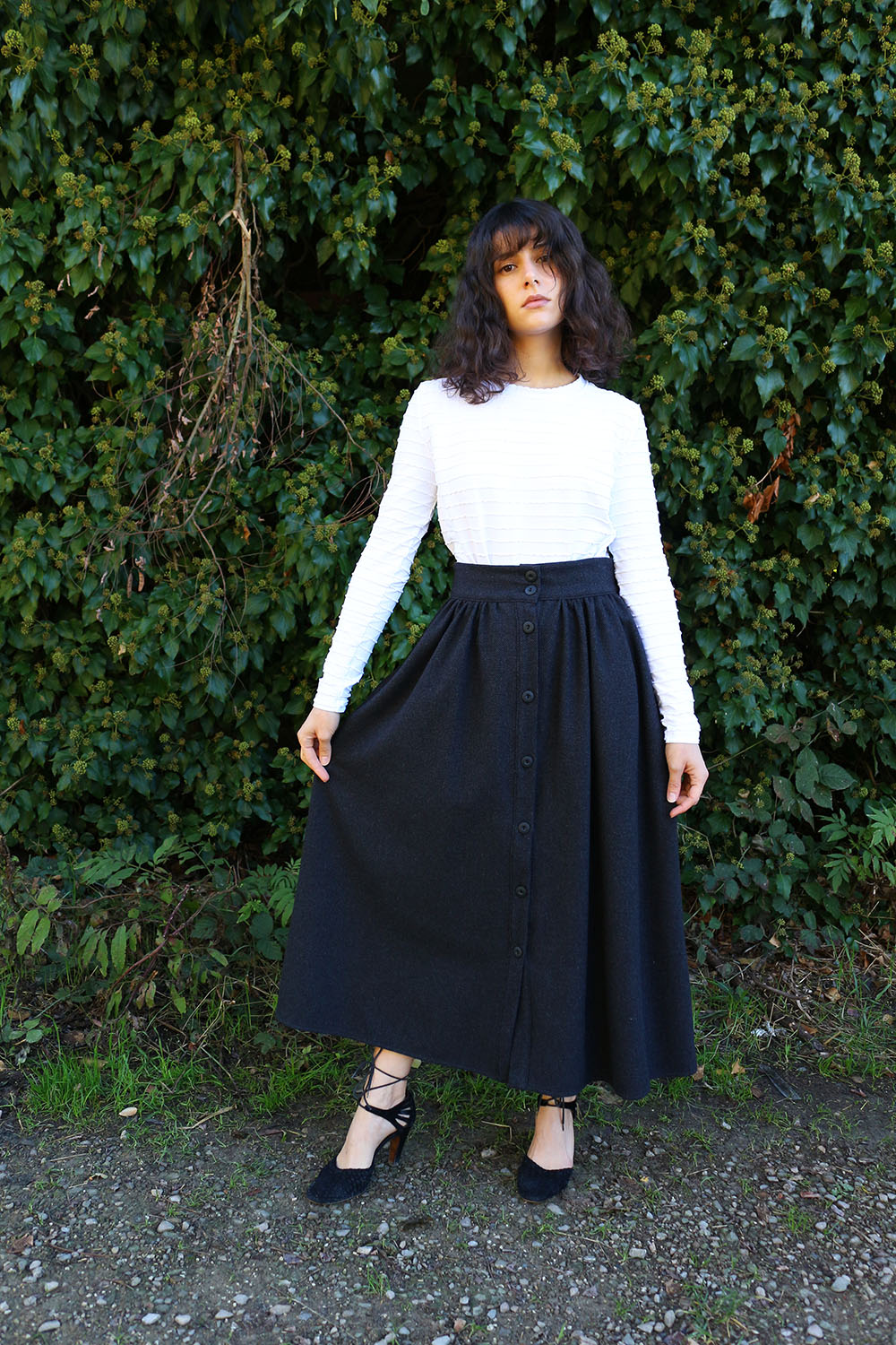 lunga 84cm, vita con elastico solo sulla schiena da 67cm a 71cm, fianchi 148cm