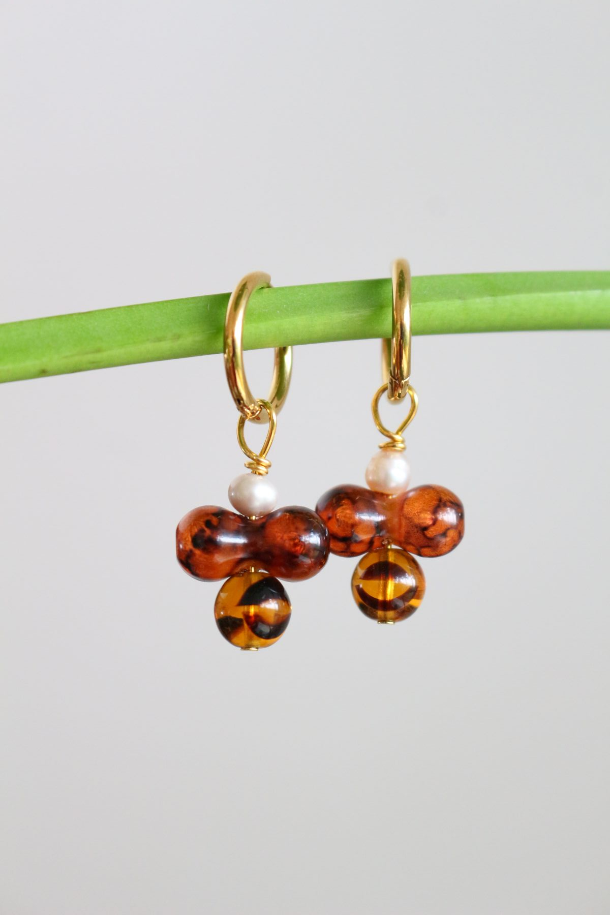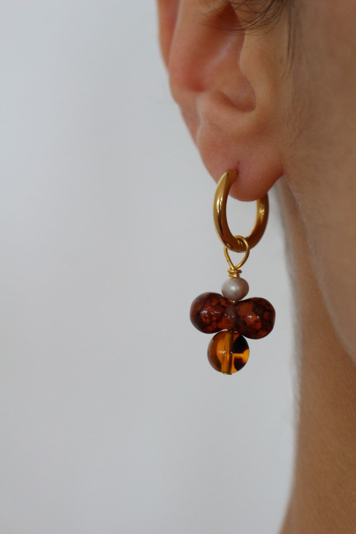 Orecchini molto semplici ma dai riflessi brillanti, pensati per dare luce e colore al viso, perline di recupero, cerchietto in acciaio inossidabile color oro nickel free.