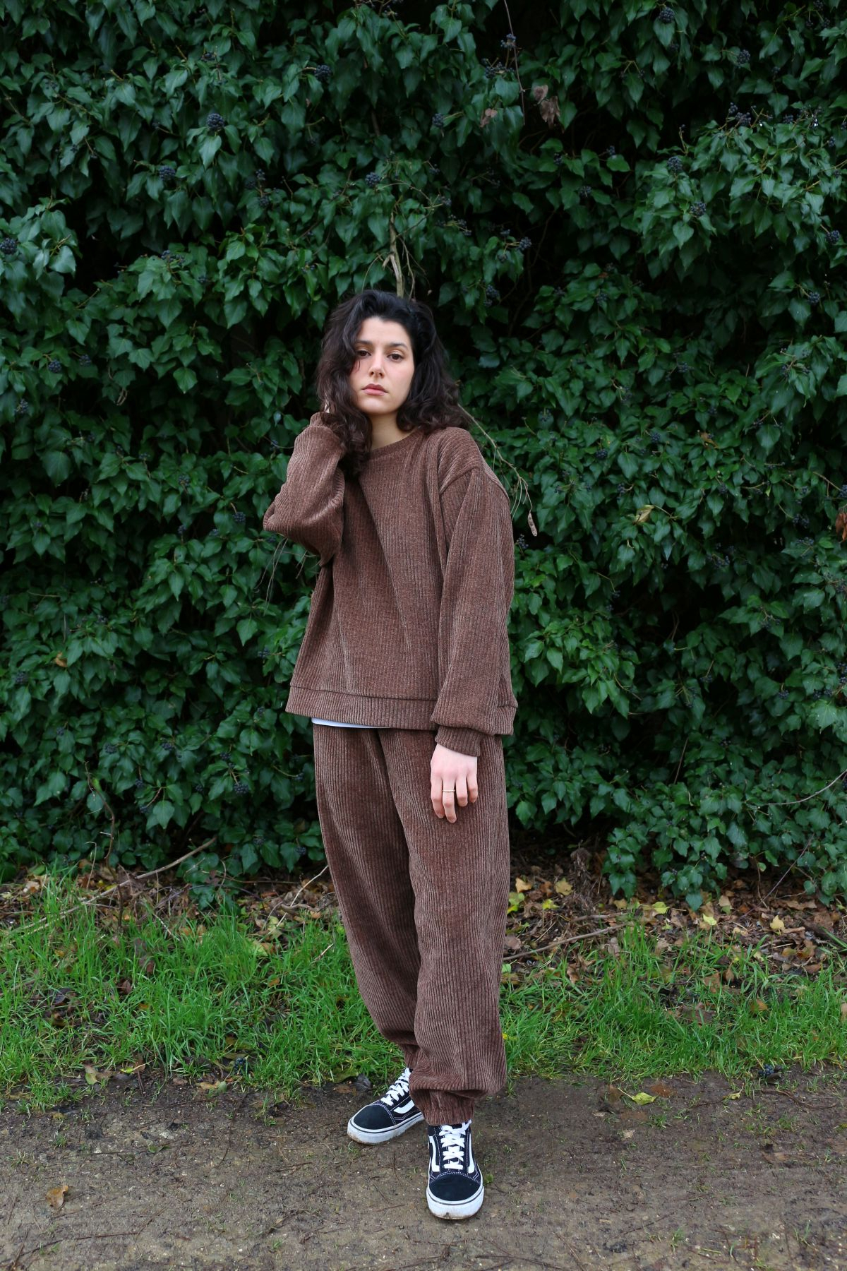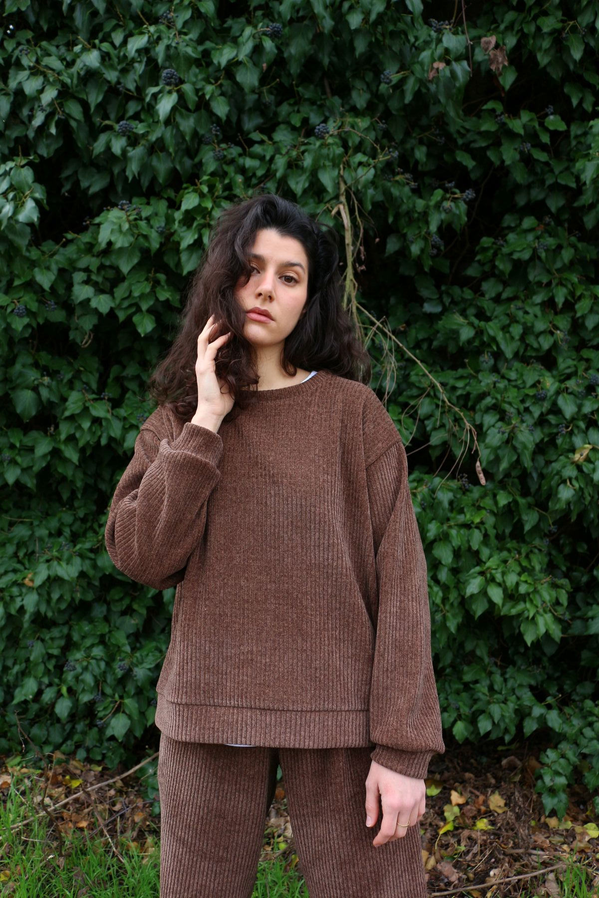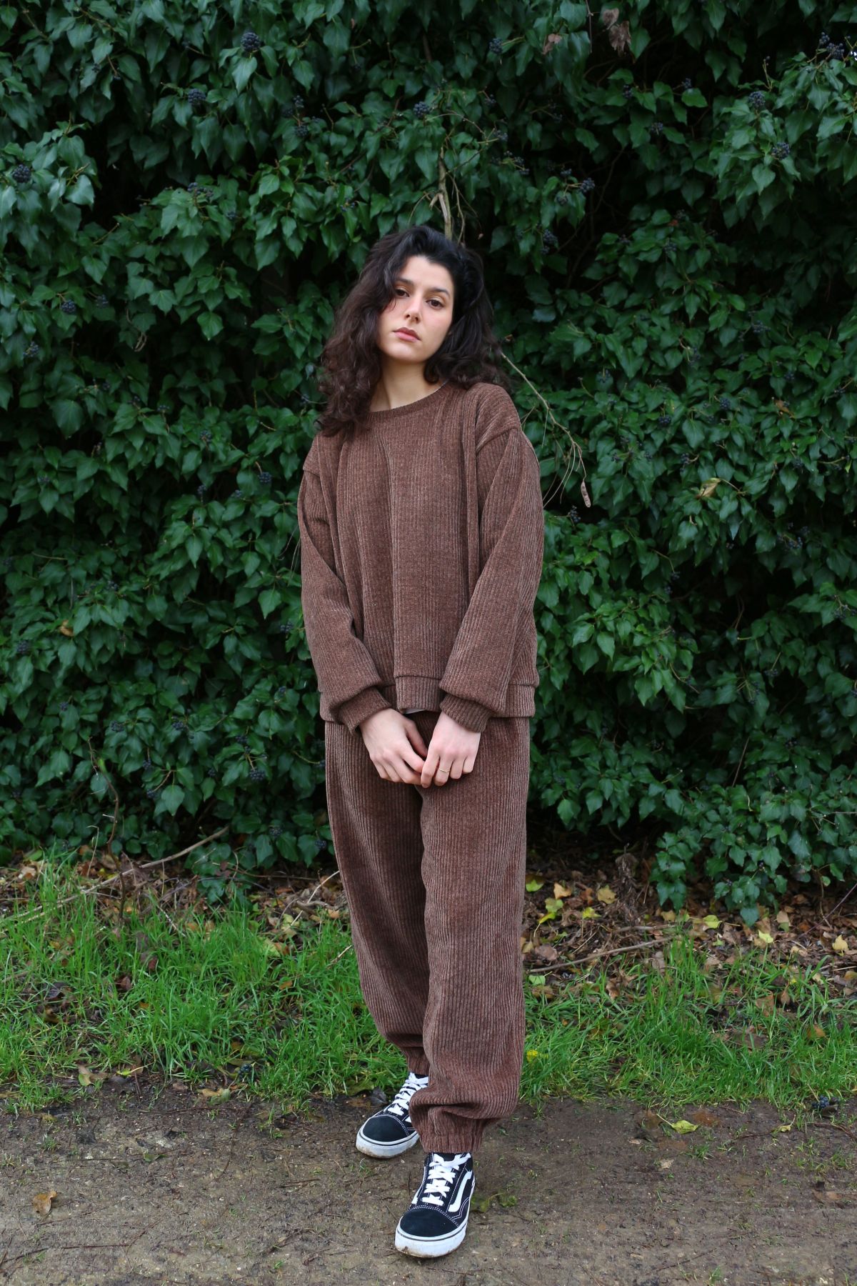 PRONTA CONSEGNA - M - L - PANTA ELASTICO VELLUTONE MARRONE FAVA DI CIOCCOLATO