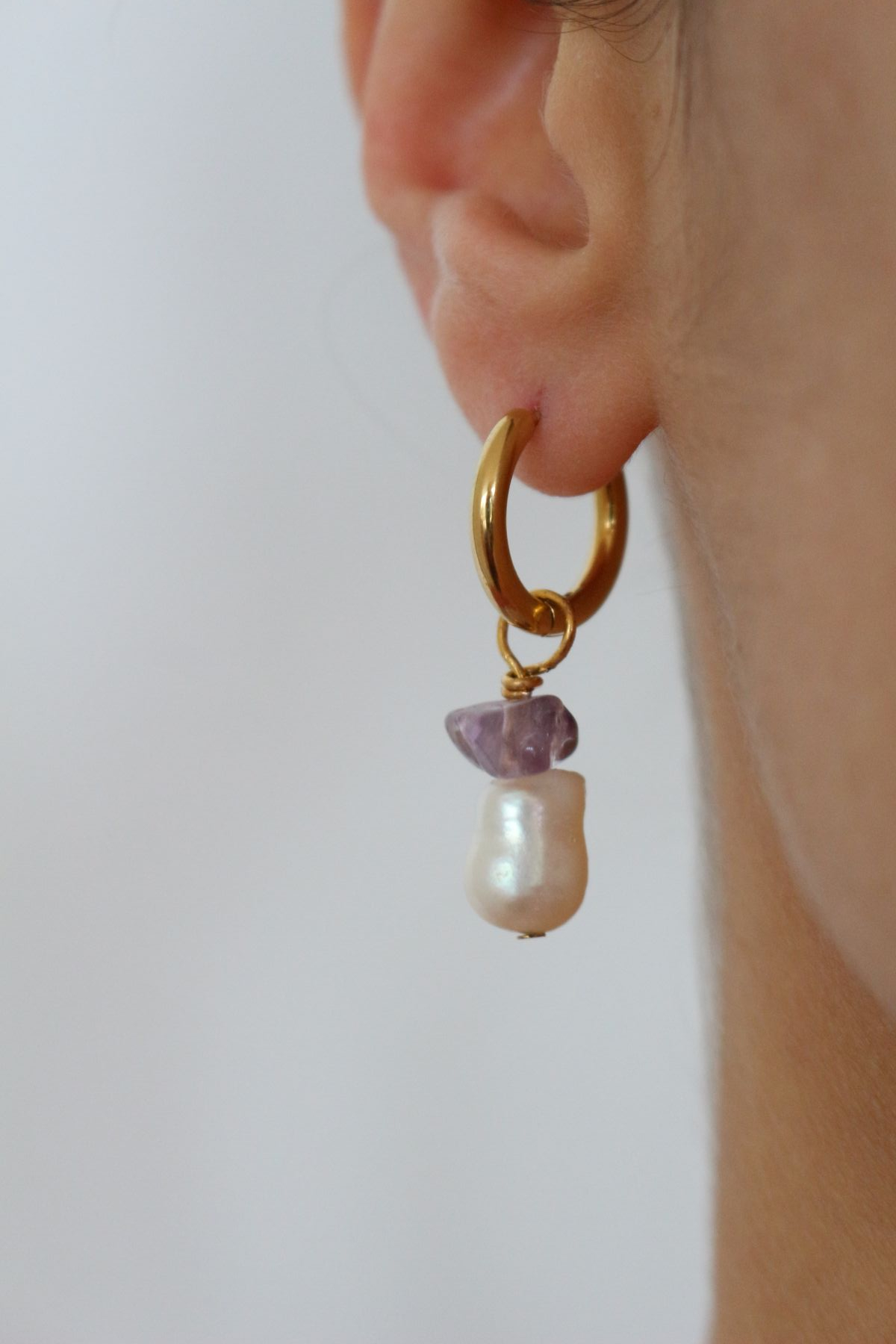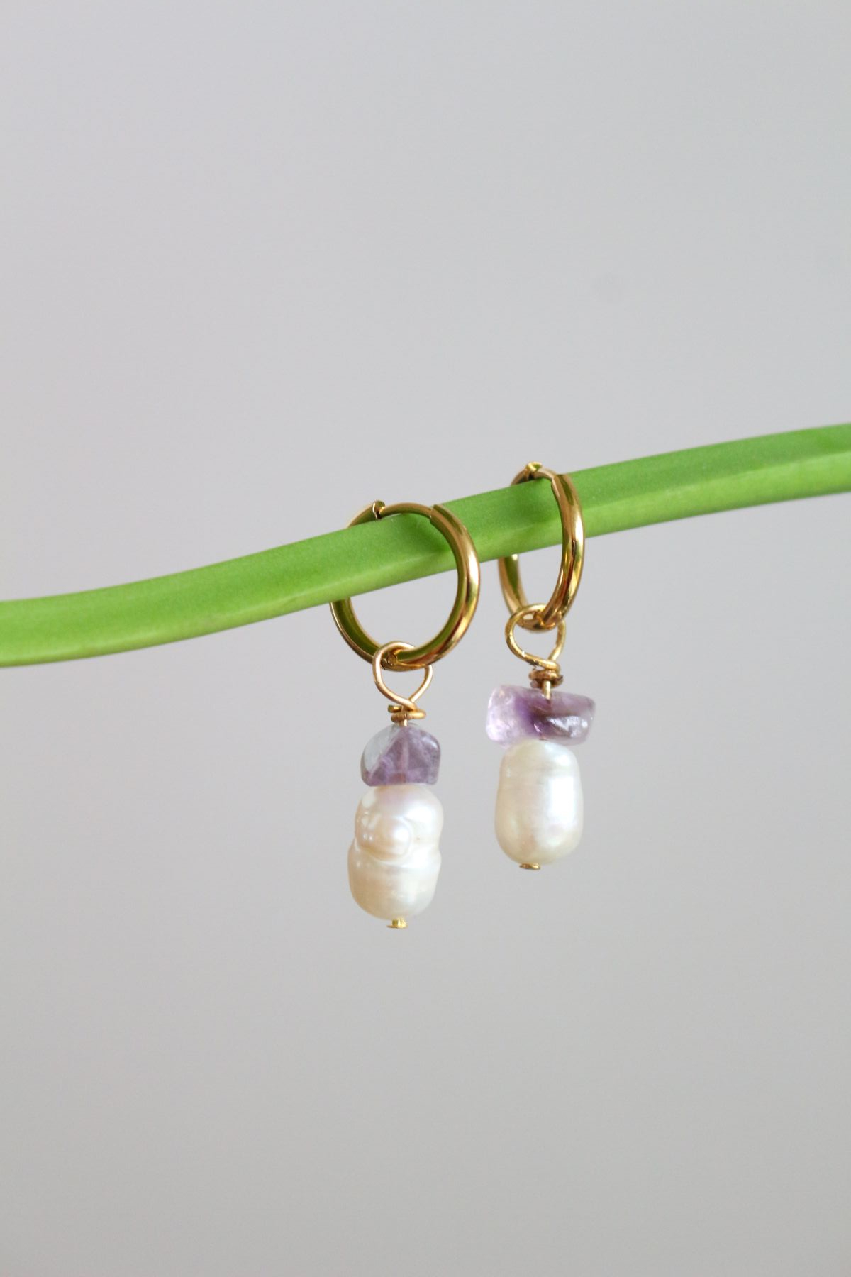 Orecchini molto semplici ma dai riflessi brillanti, pensati per dare luce e colore al viso, perline di recupero, cerchietto in acciaio inossidabile color oro nickel free.