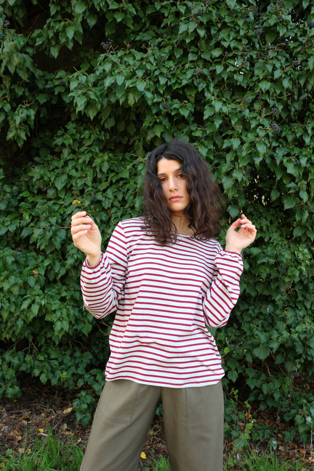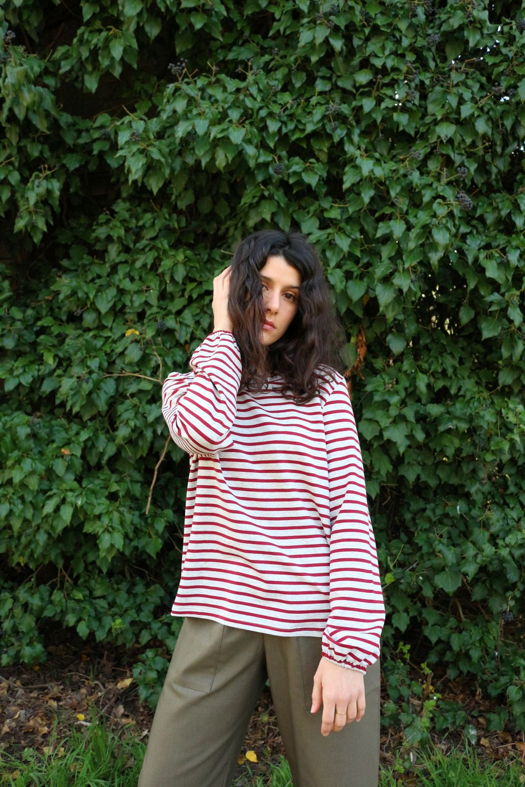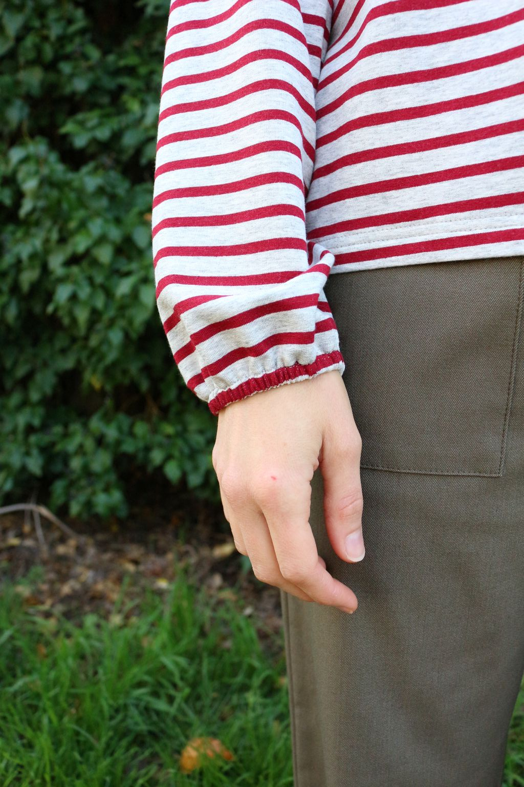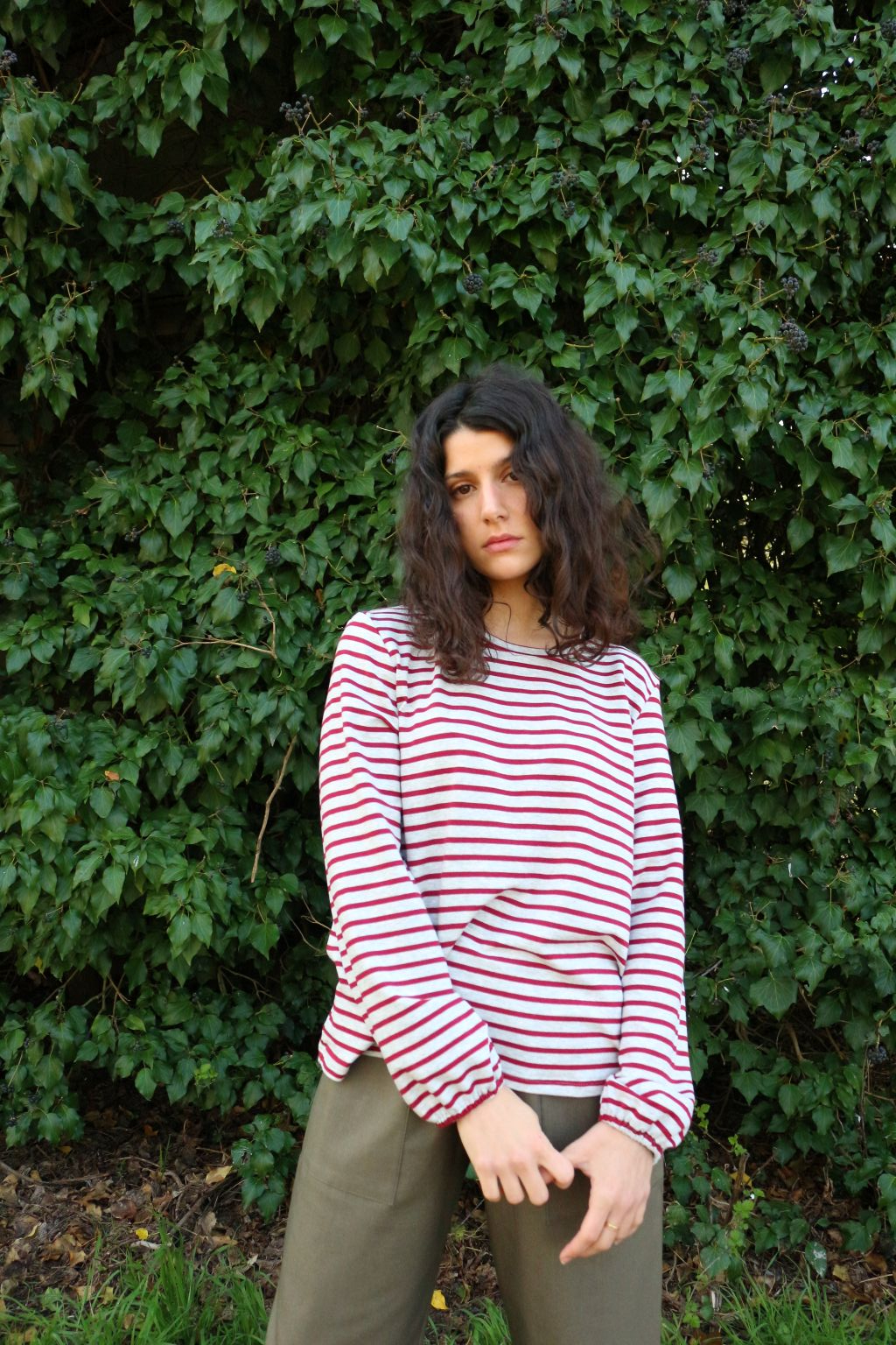 Maglia morbida con elastico ai polsi e leggero sbuffo.